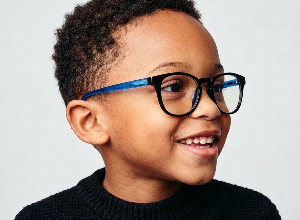 Protective children's blue block glasses with blue or pink arms. Opulize blue light glasses filter harmful blue light rays from digital screens. Scratch-resistant lenses and spring hinges for extra comfort. Small Opulize Pouch included.
