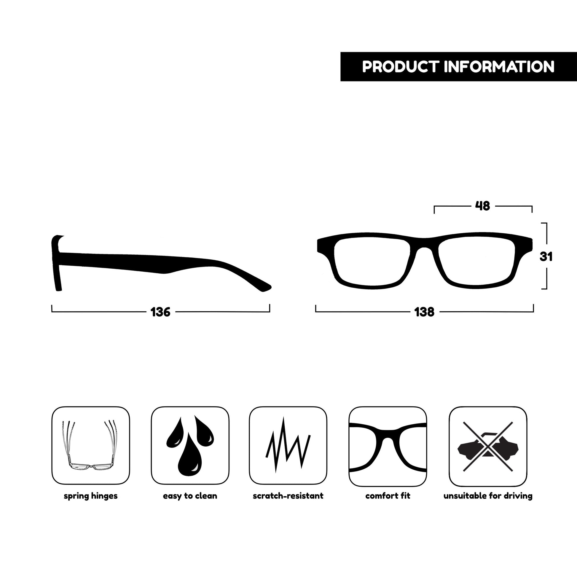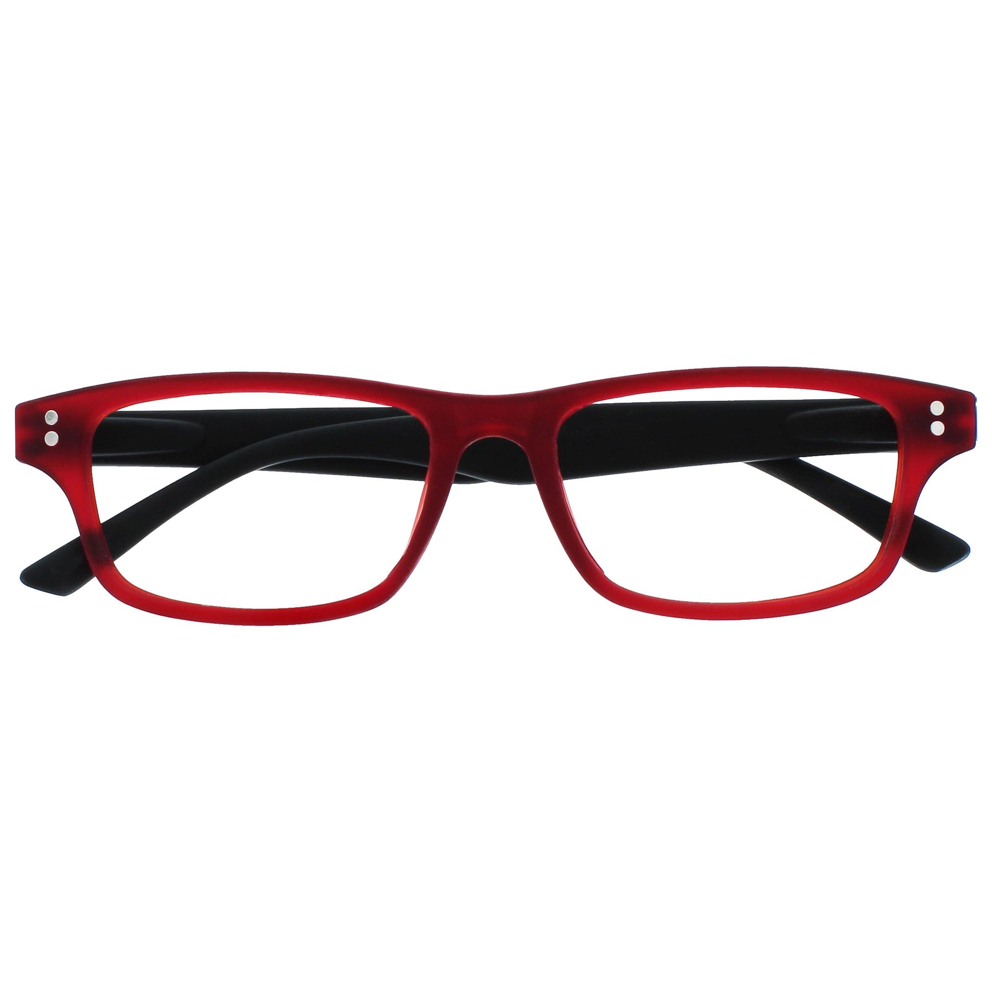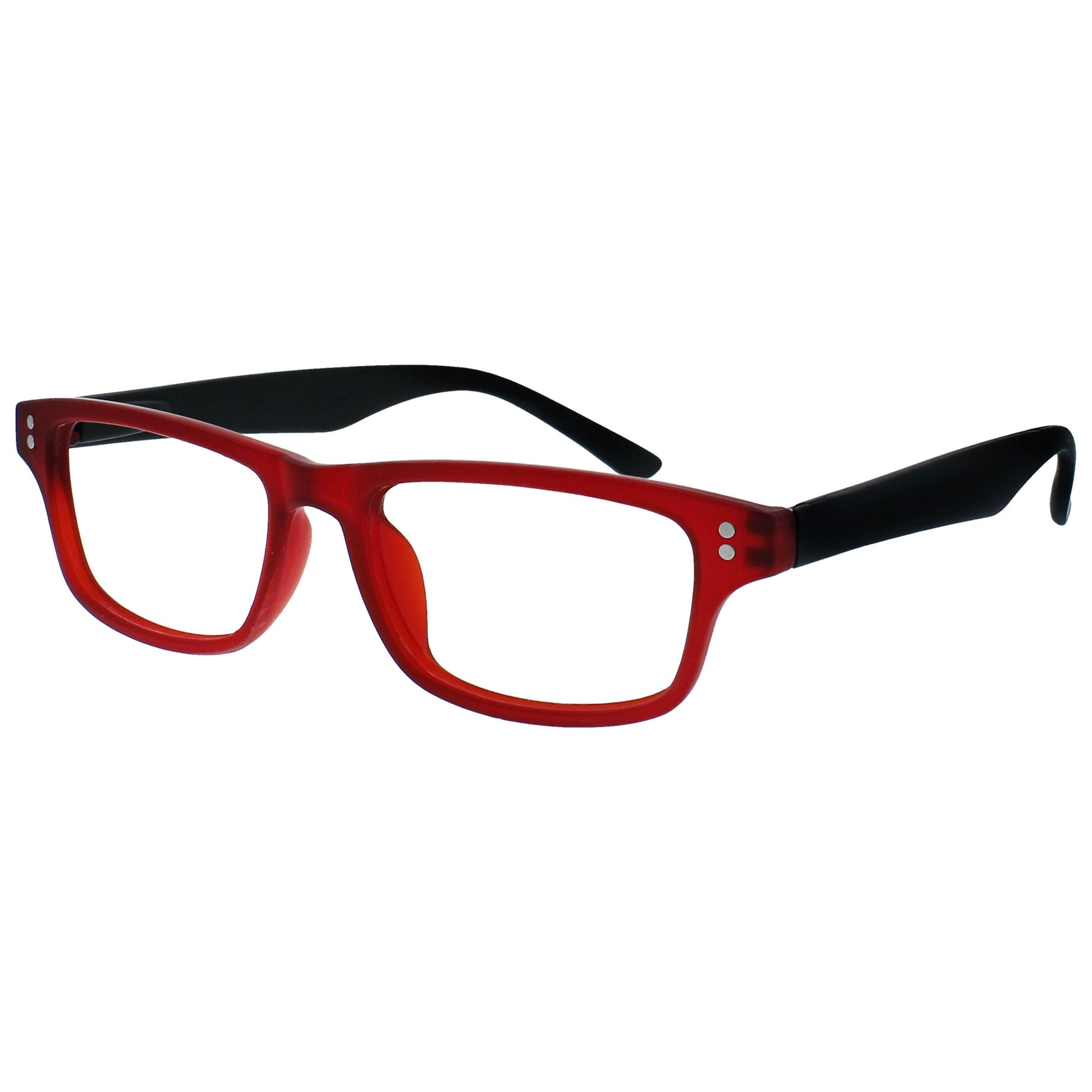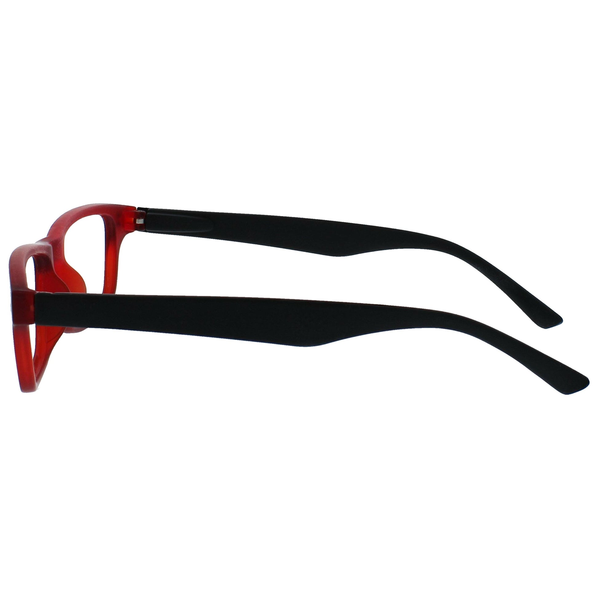 Classic rectangular matt frame, in Black and Deep Red. Scratch-resistant lenses and spring hinges for extra comfort. Unisex.