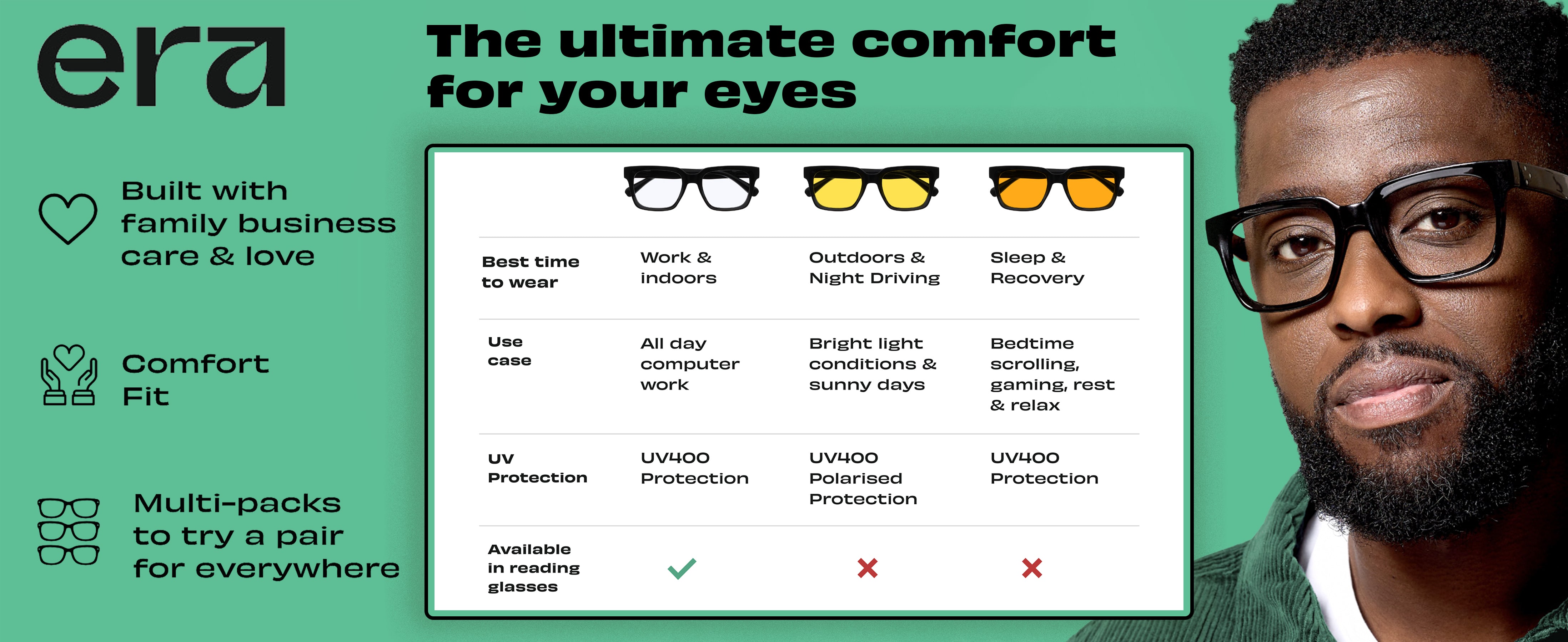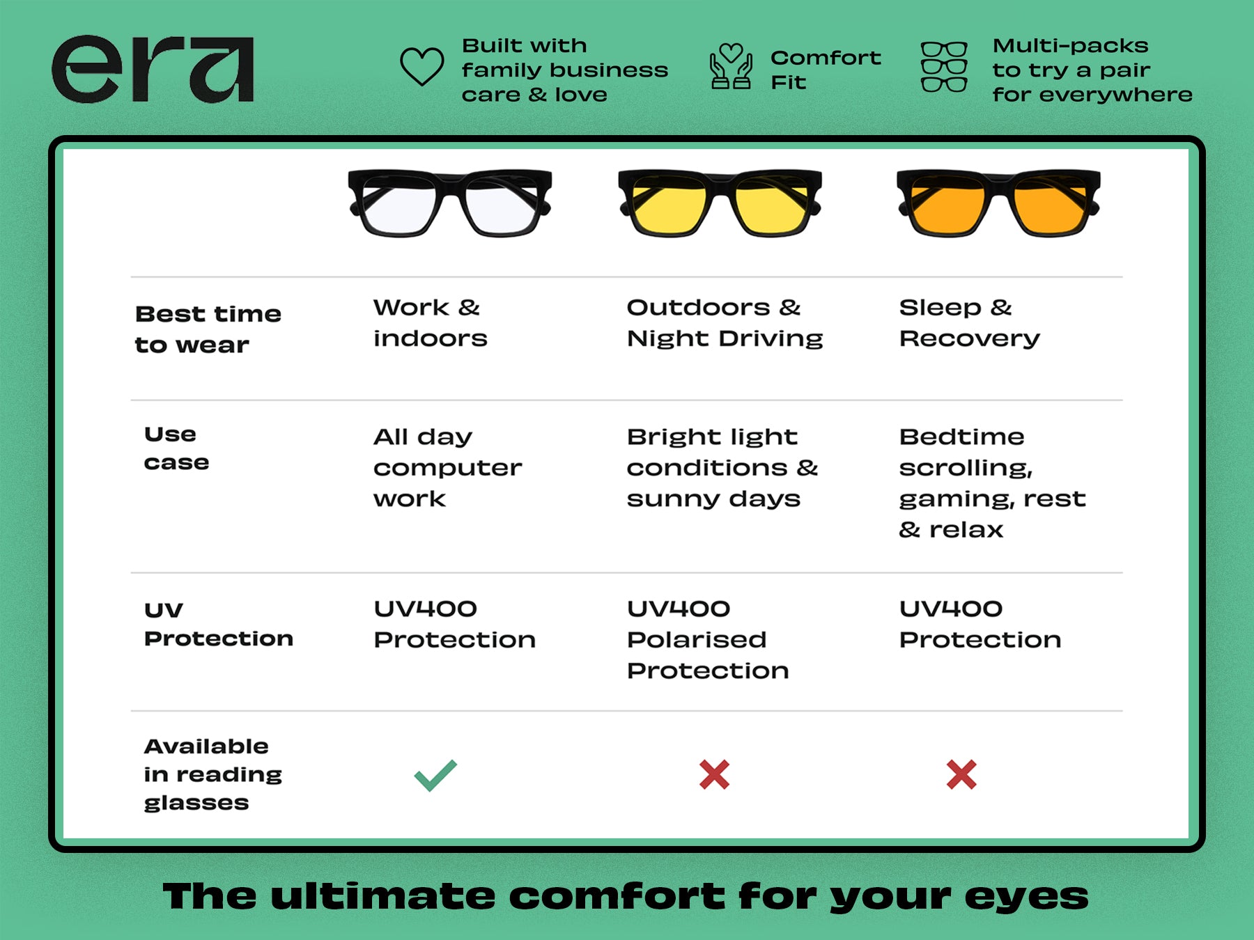 Our multi-packs come in colours and lens types for every occasion, so you can work, scroll, stream and unwind all in a day with the same style.