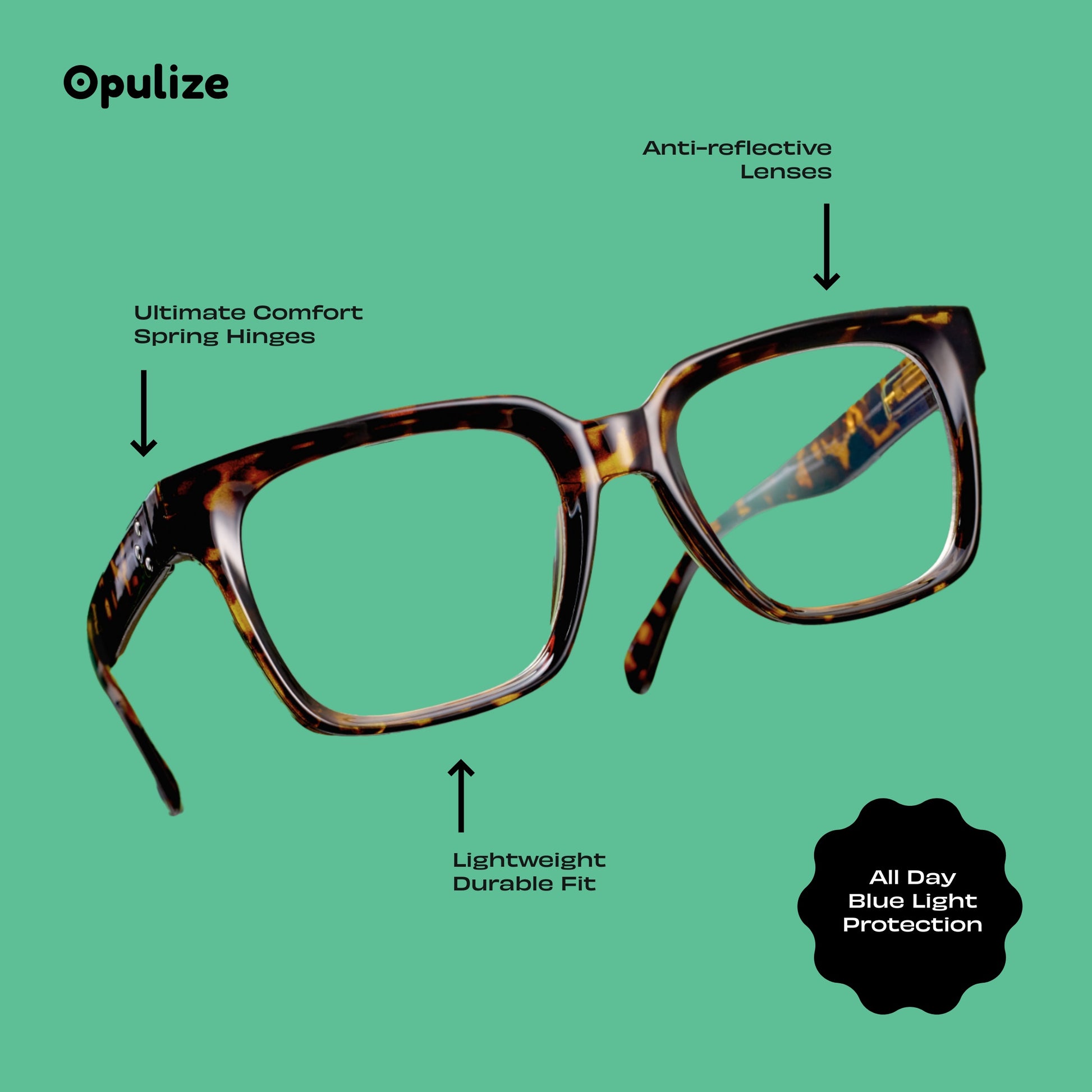 Our glasses are designed with spring hinges in every pair, so that they can adapt perfectly to your face shape for all day wear.