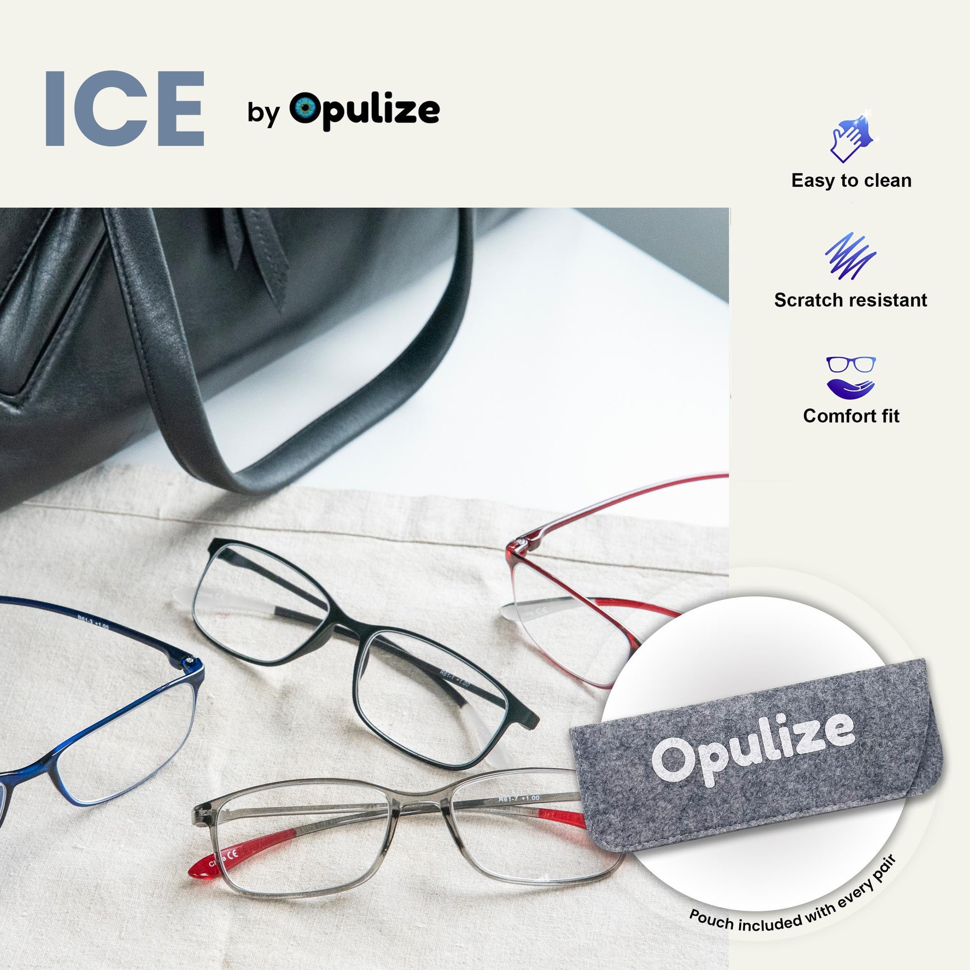 Ultra lightweight bendable frame, in 4 vivid colours. Perfect to carry in your pocket or handbag. Scratch resistant lens. Unisex. Opulize felt pouch included.