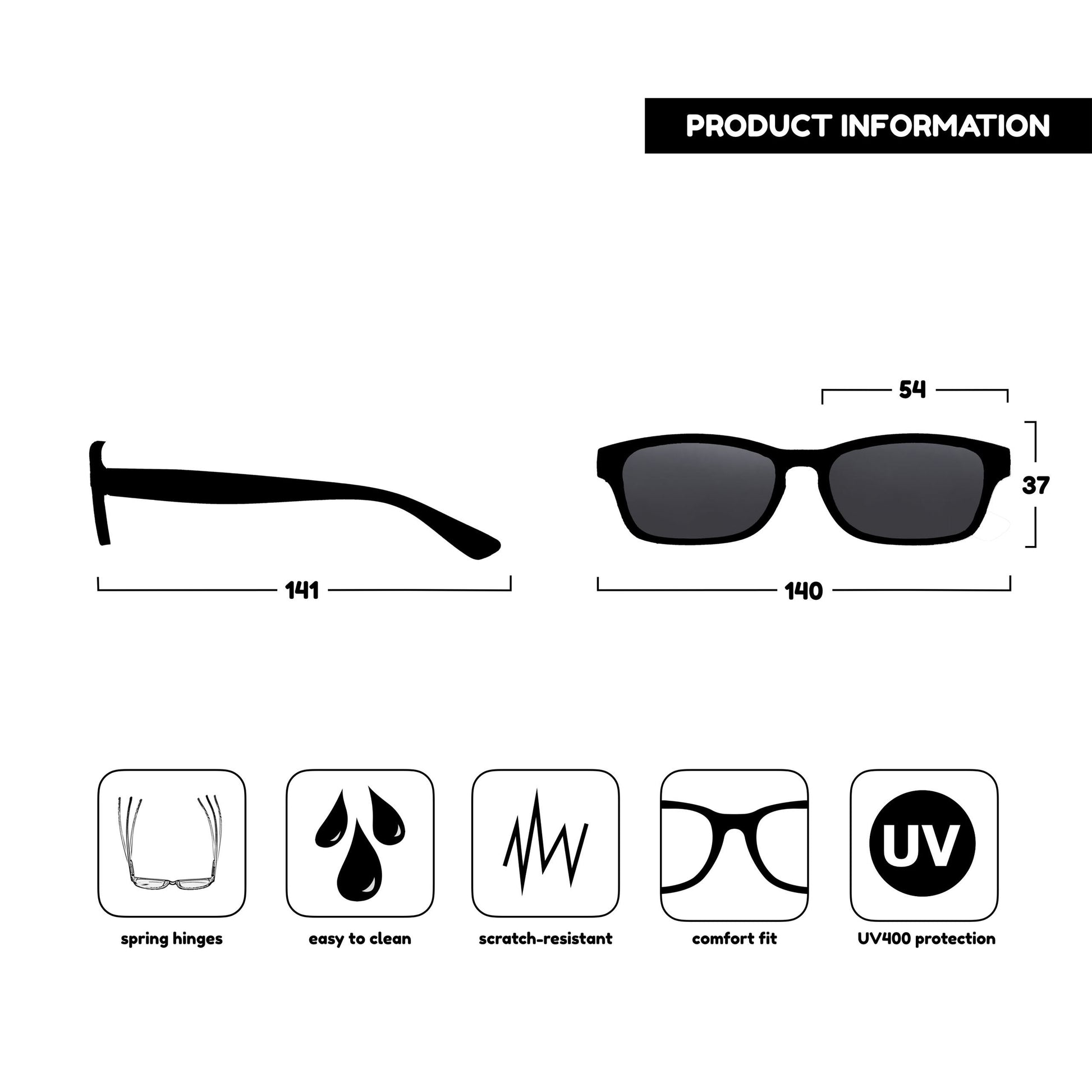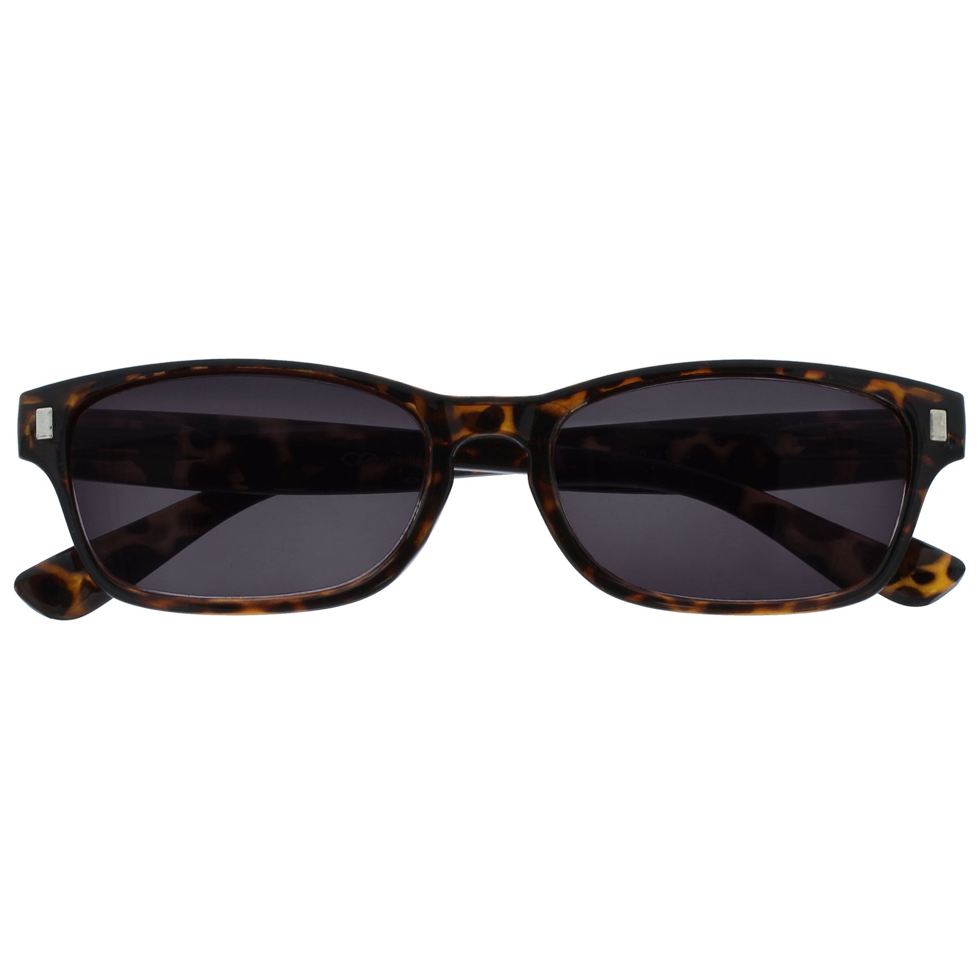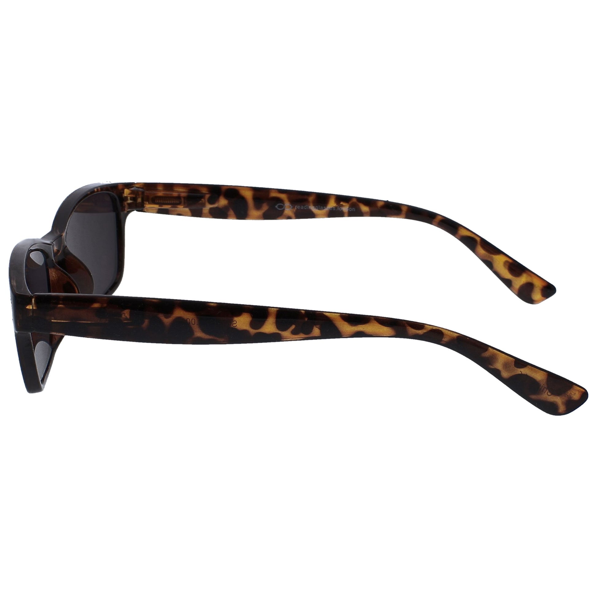 READING SUNGLASSES (+1.00 to +3.50) in this popular Classic 1950's style rectangular frame in 3 tortoiseshell colours. With UV400 protection, scratch-resistant lenses and spring hinges for extra comfort. Unisex