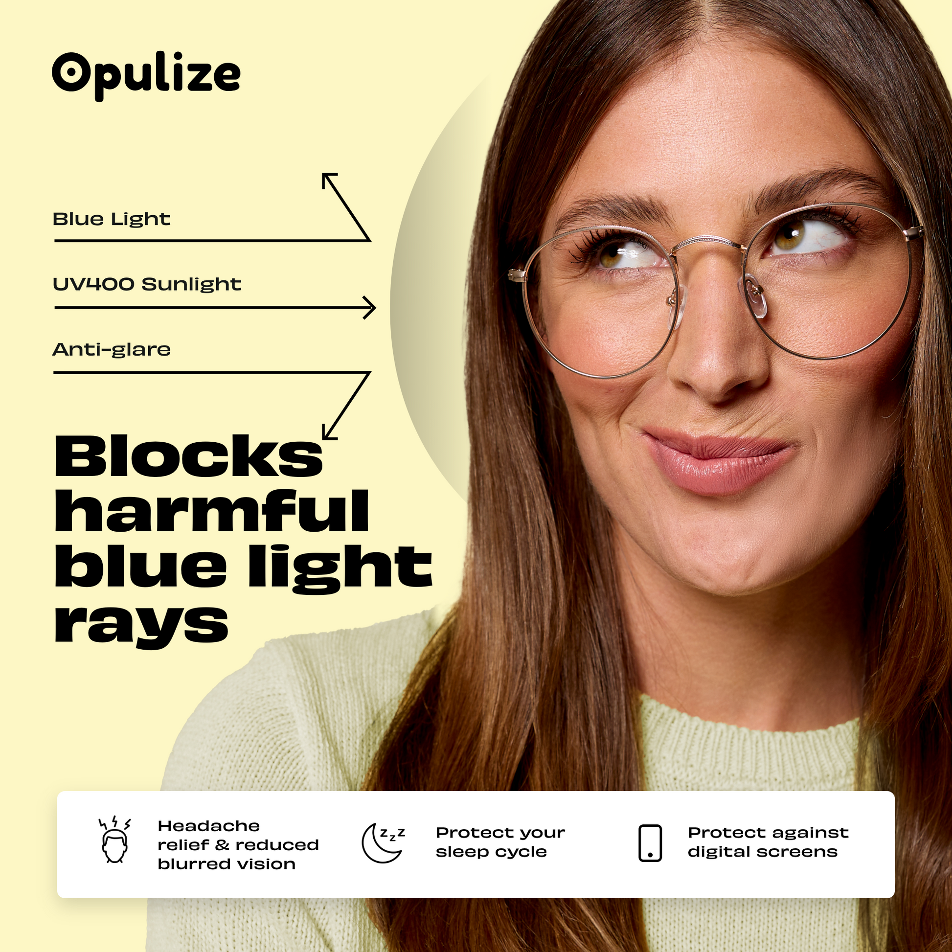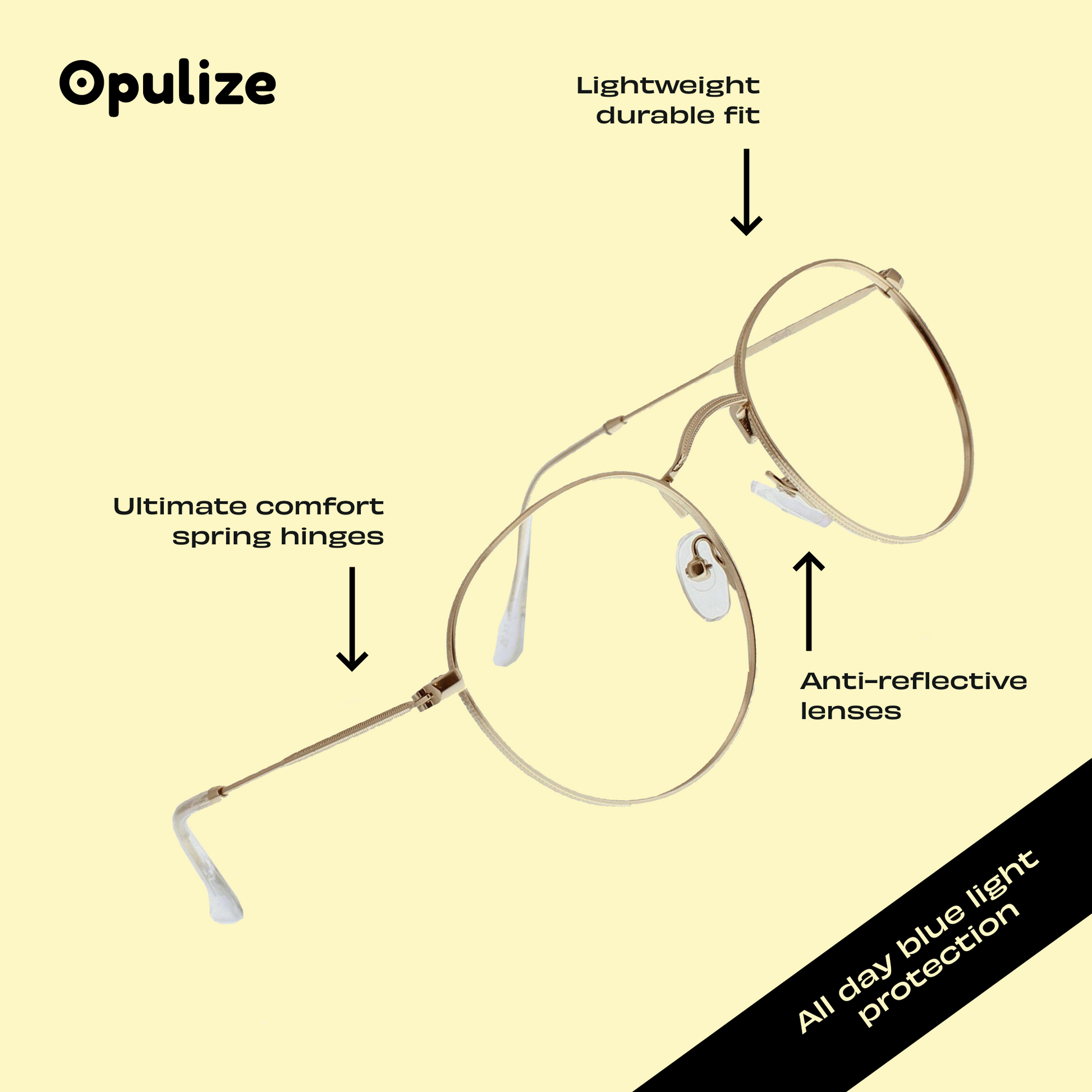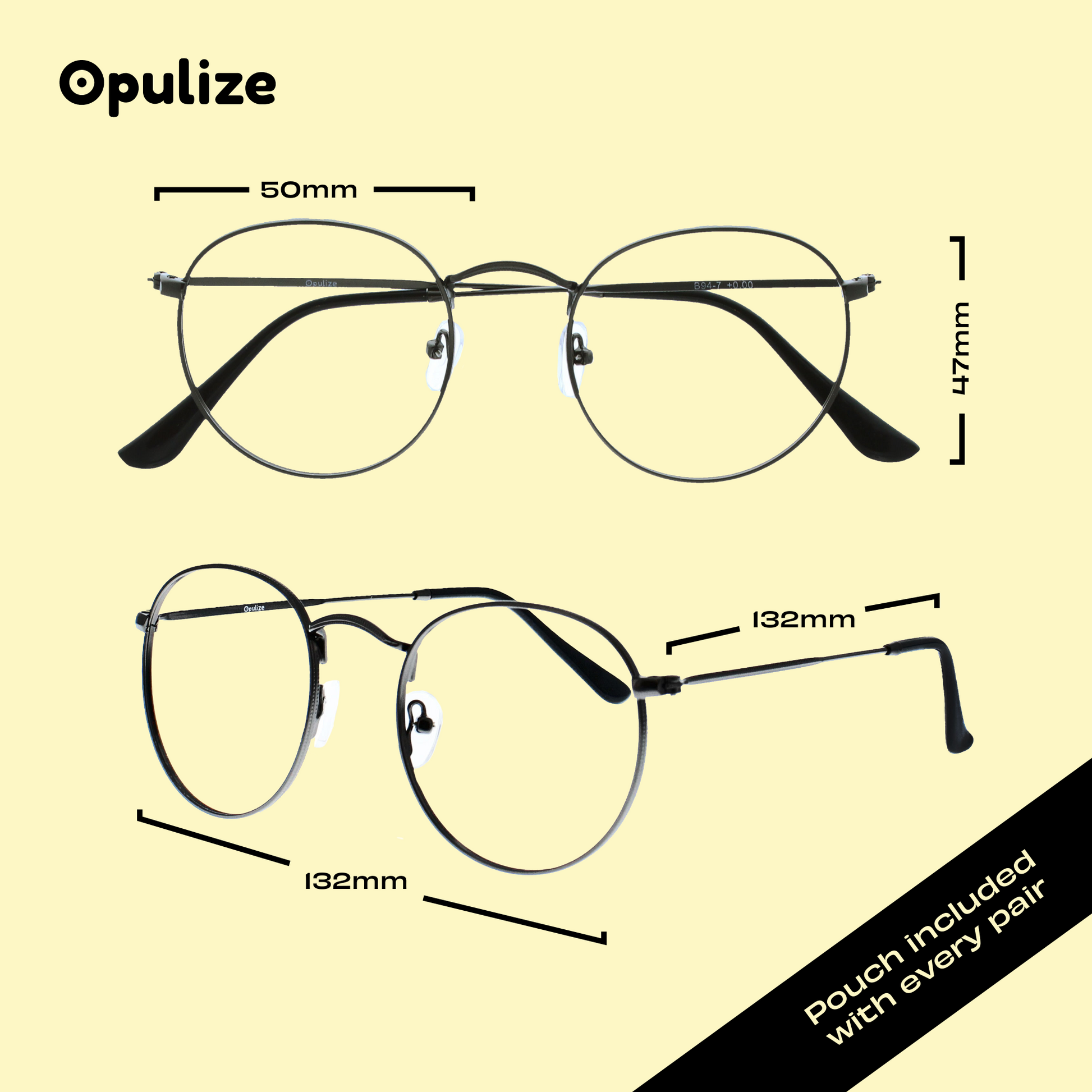 Opulize Blue Light Glasses filter harmful light rays from your screens. These iconic lightweight wire frames inspired by 1960's music culture, makes these distinct round retro shape glasses a design classic. Opulize felt pouch included.